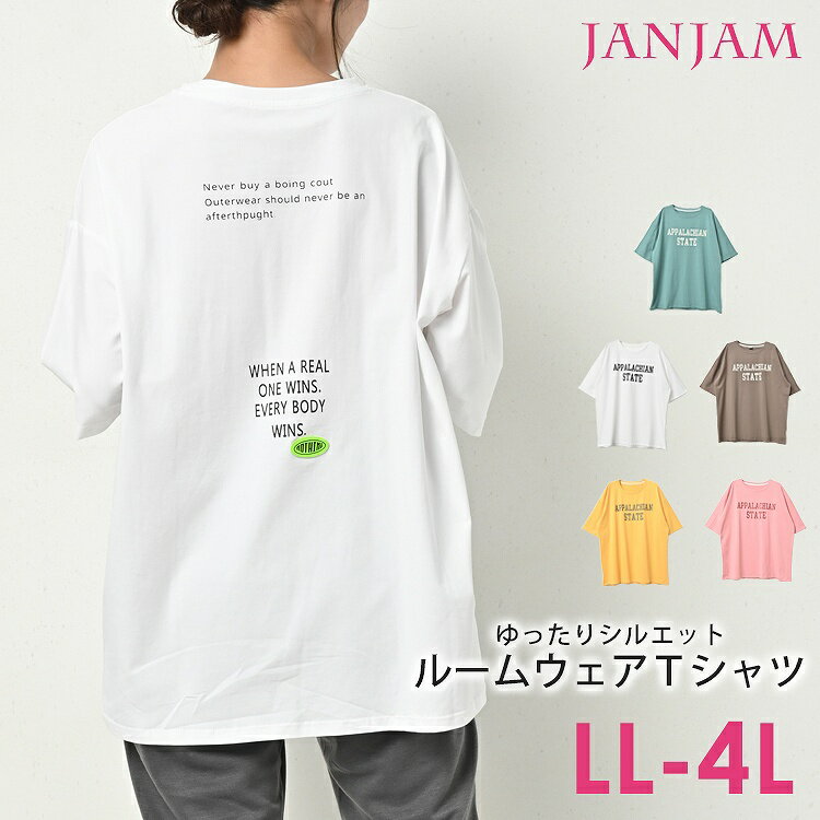 【メール便送料無料】メール便対応 大きいサイズ レディース ルームウェア ビッグTシャツ 5分袖 英字ロゴプリント トップス LL-4L ゆったりサイズ ぽっちゃり女子 プラスサイズ