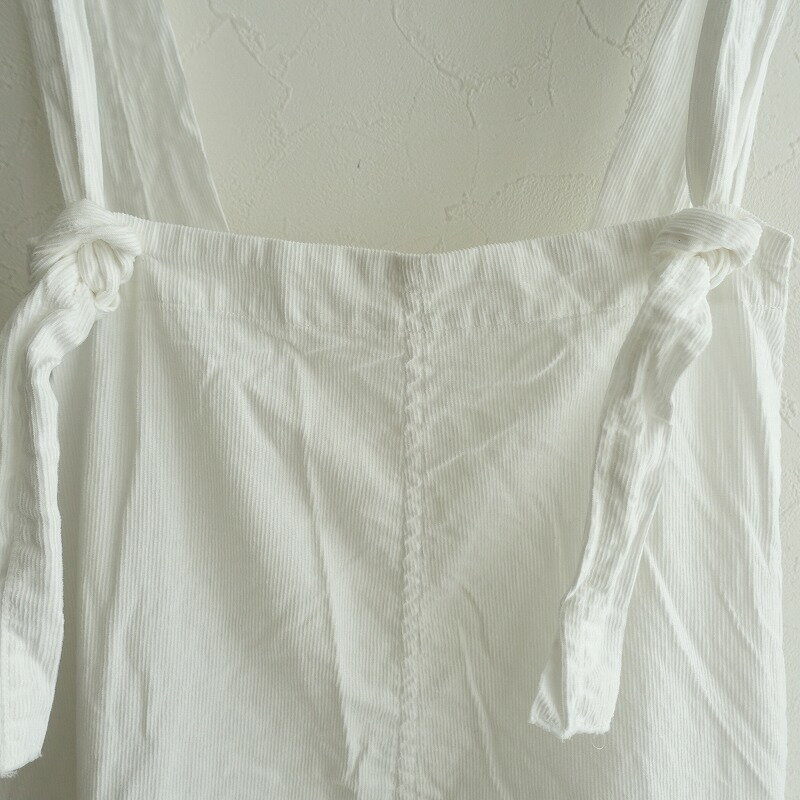 ふんわり柔らかいサマーコーデュロイ素材で仕立てられ、肩ひもは穴に通して結んで調整できます。