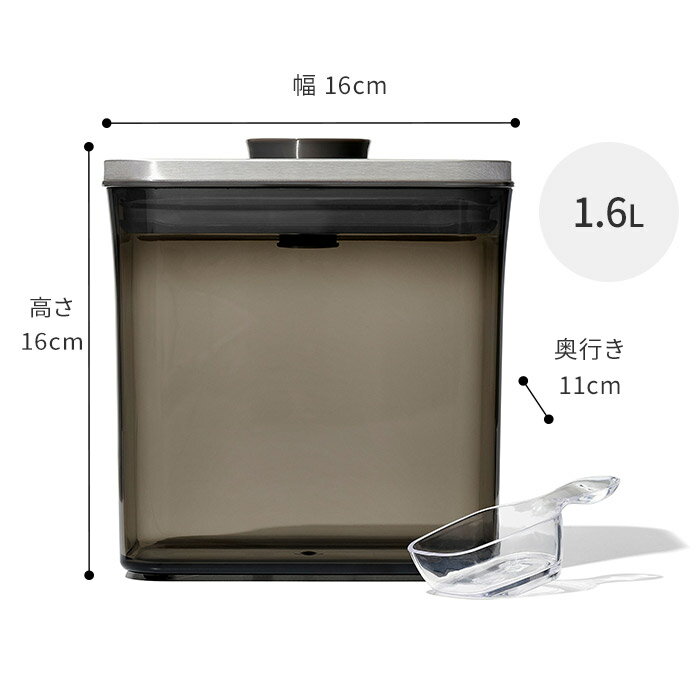コーヒー豆 保存容器 OXO オクソー コーヒー&ティーポップコンテナ レクタングル(ショート)コーヒースクープ付 1.6L UVカット 珈琲 紅茶 食品収納 密閉 調味料入れ スタッキング おしゃれ ギフト 乾物ストッカー 角型 コンテナ ワンプッシュ 透明容器 黒 プレゼント