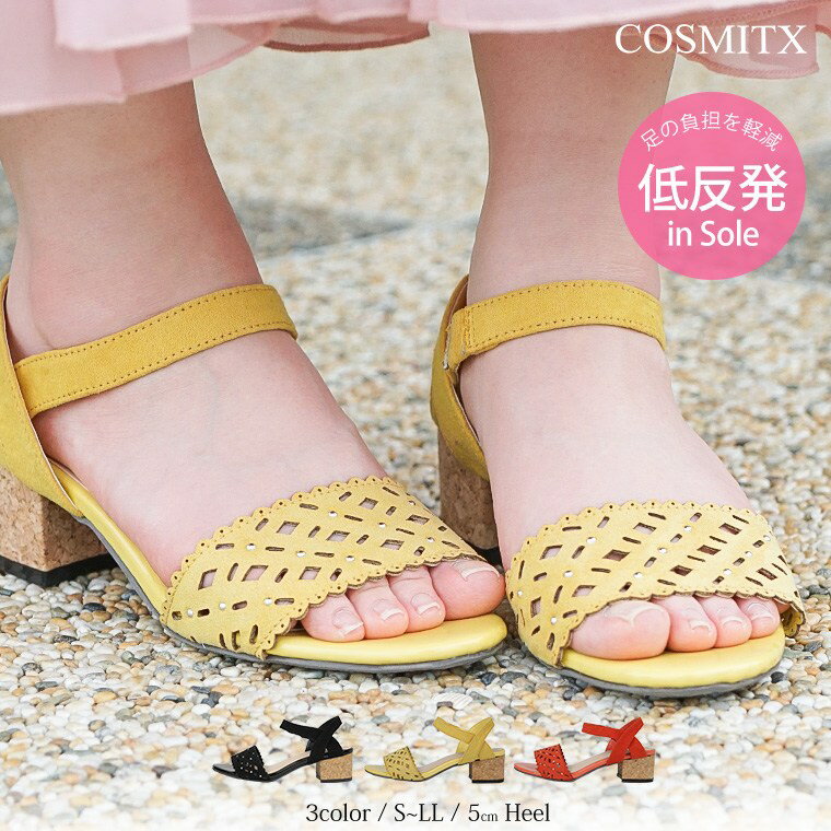 パンチング スタッズ 美脚 ヌーディー ストラップ サンダル レディース 歩きやすい 旅行 ヒール ローヒール 脱げない オープントゥ コンフォートサンダル キラキラ かわいい サンダル 黒 おしゃれ 夏 黒 ブラック イエロー オレンジ スタッズ 5677 送料無料