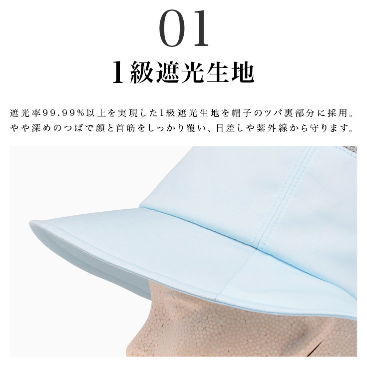 遮光率99.99%以上の1級遮光生地をツバ部分に採用。