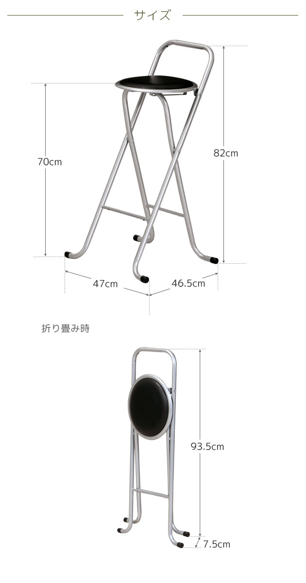 品 番 PFC-700(BK) サイズ 幅470×奥行465×高さ820(座面高700)mm【折り畳み時】幅470×奥行75×高さ935mm 材 質 【張地】ビニールシート【フレーム】スチール(φ22.2mm) 粉体塗装(シルバー) 組 立 完成品 ▼メーカーカタログ▼ >>>画像をクリックすると拡大します<<< メーカー希望小売価格はメーカーカタログに基づいて掲載しています