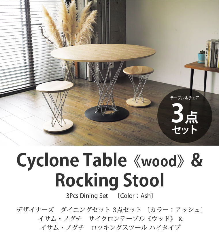デザイナーズ ダイニングセット 3点セット 〔カラー:アッシュ〕イサム・ノグチ サイクロンテーブル《ウッド》 & イサム・ノグチ ロッキングスツール ハイタイプ Cyclone Table《wood》& Rocking Stool 3Pcs Dining Set 〔Color:Ash〕 イサム・ノグチの名作をお得なセットで ミッドセンチュリーを代表するデザイナー、イサム・ノグチによる「サイクロンテーブル」と「ロッキングスツール」をお得なダイニングセットにしました。
